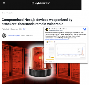 Compromised Next.js devices weaponized by attackers: thousands remain vulnerable