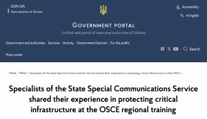 Specialists of the State Special Communications Service shared their experience in protecting critical infrastructure at the OSCE regional training