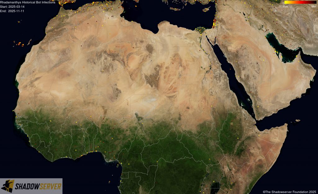 (IP-geolocated Rhadamanthys infections – North Africa)